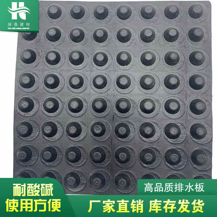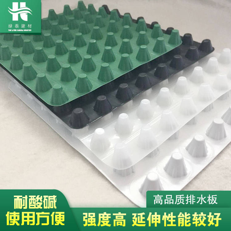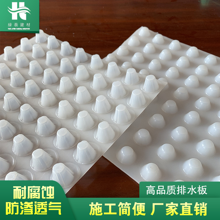 圓錐突臺的頂面膠接一層過濾土工布,以阻止泥土微粒通過,從而避免排水通道阻塞使孔道排水順暢。 傳統(tǒng)的排水方式使用磚石瓦塊作為導(dǎo)濾層、使用較多的鵝卵石或碎石作為濾水層、將水排到指定地點。而用排水板取代鵝卵石濾水層來排水則省時、省力又節(jié)能、節(jié)省投資、還能降低建筑物的荷載。